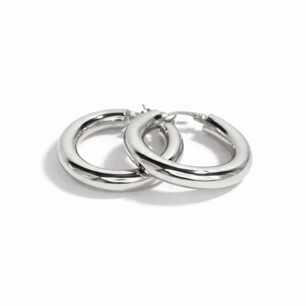 The 925 Sterling Silver (18K Gold Plated) CLASSIC MEDIUM HOOPS (30 x 5 mm) are the ultimate everyday essential—elegant, bold, and effortlessly timeless. With a smooth, high-shine finish and the perfect medium size, they add the prettiest touch of glam while still feeling lightweight and wearable from day to night.